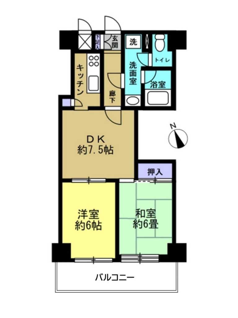 【占有面積】壁芯48.87㎡(約14.78坪) 【バルコニー/テラス面積】6.16㎡(約1.86坪)2DK